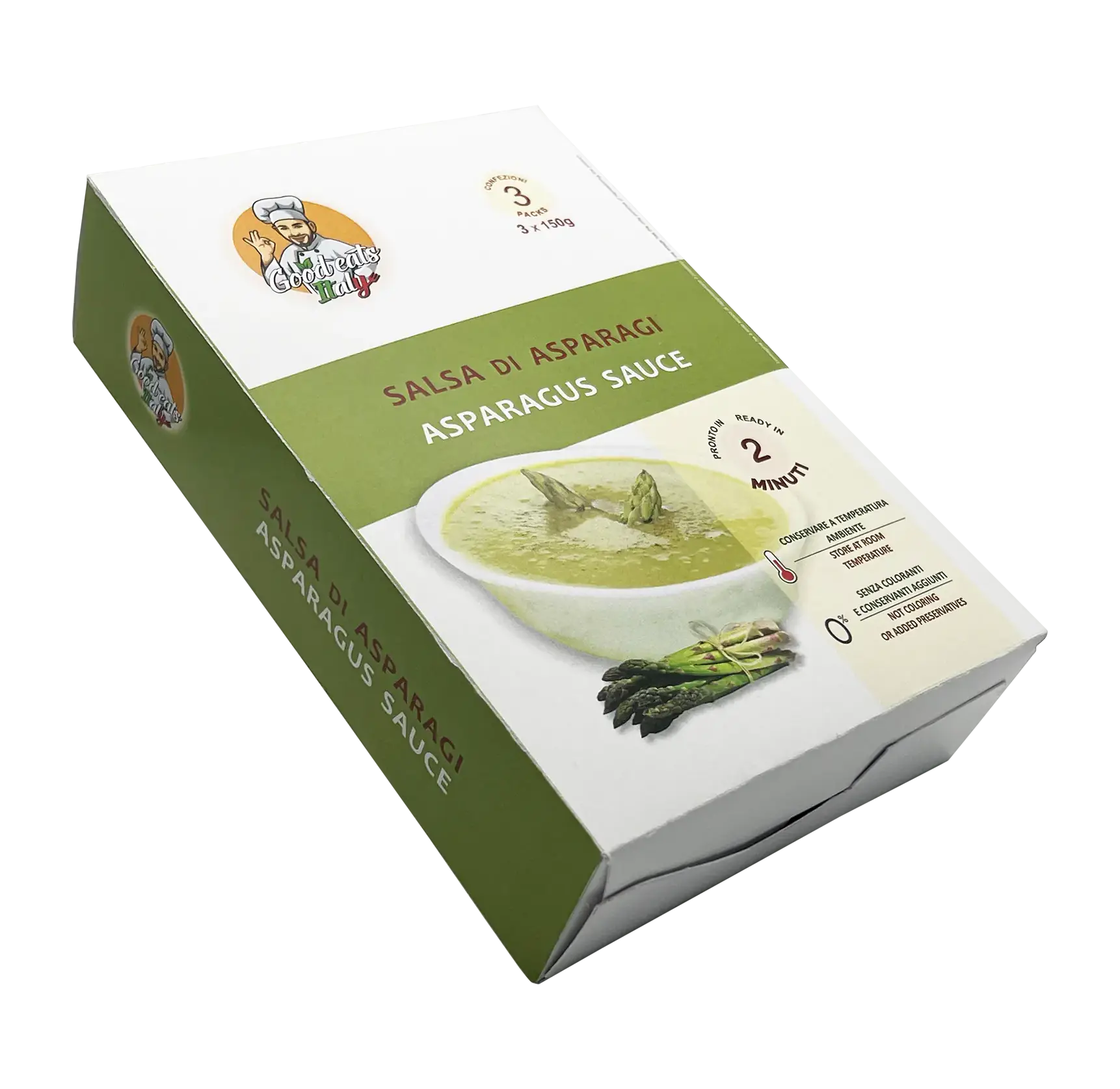 Deze zachte bechamelsaus met groene asperges werd bereid volgens een authentiek, Italiaans recept. Een verrassende saus die in de smaak valt bij velen. Combineer met je favoriete pastasoort en serveer