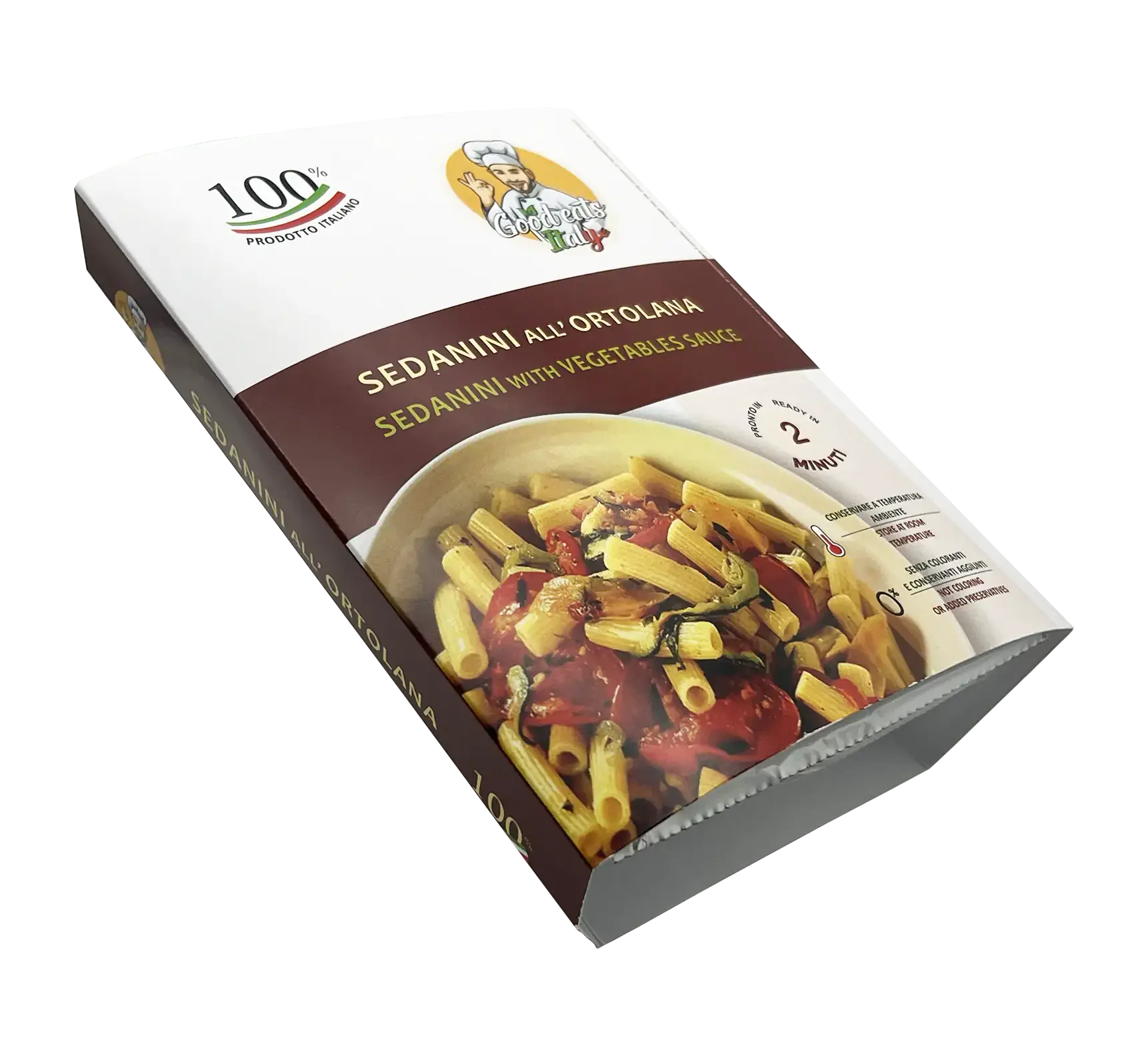 Durum TARWEGRIESMEEL pasta 29 % (durum TARWEGRIESMEEL, water) tomatenpulp (tomatenpulp, zuurteregelaar: citroenzuur), groentemix 28 % (courgette, aubergine, paprika, wortel, ui, SELDERIJ), zonnebloemolie, extra vergine olijfolie, boter (MELK), basilicum, suiker, zout, natuurlijke aroma’s (SELDERIJ), peterselie, aromatische kruiden. Bevat Gluten. Kan sporen bevatten van: vis, soja, gluten, melk, sulfieten, eieren, selderij en noten.